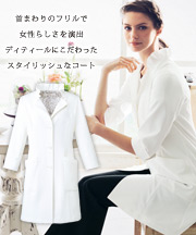 ガーリーなフリルの襟元が特徴的なレディースコート。