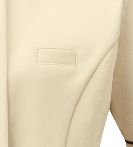 パイピングがおしゃれな両脇ポケット。入り口がカーブ状になっているため出し入れしやすいのが特徴です。
