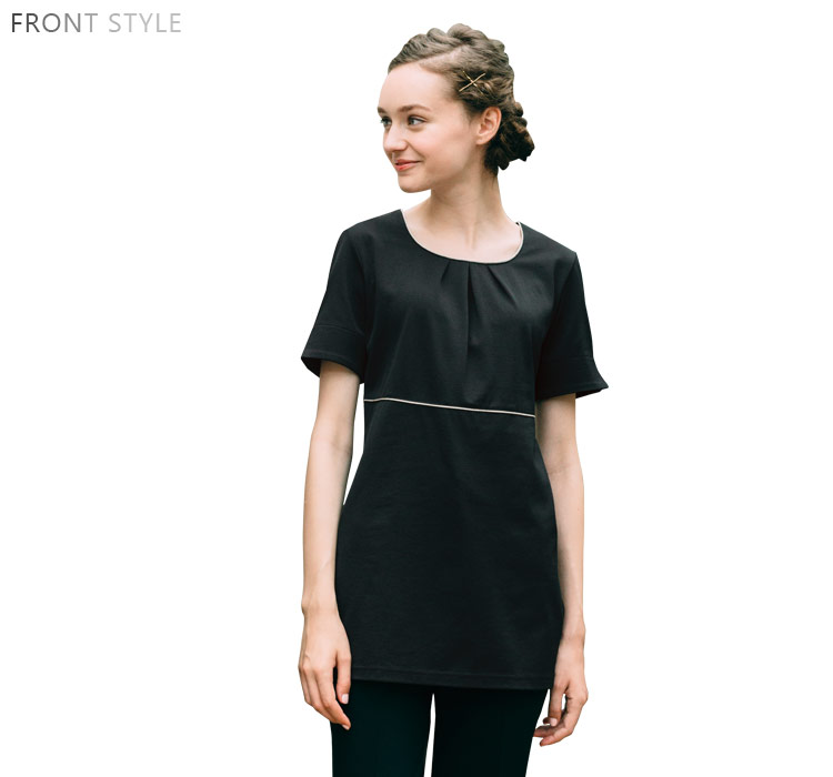 胸元のパイピングの切替えとギャザーが高級感を与えます。スリット(袖口・両脇)