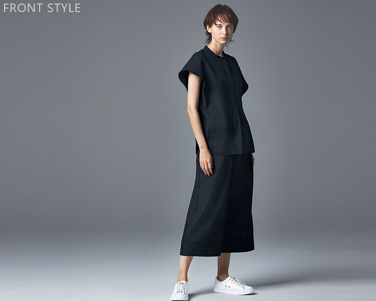 ファッションディレクター榎本実穂が手掛ける「UNITE DIVISION OF ME」の人気NO.1スクラブ。流れるようなラインが美しいフレンチスリーブのファスナースクラブ。