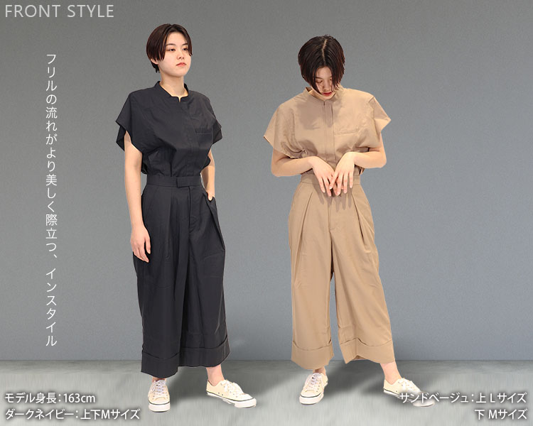 パンツにウエストインにすることで、フリルがより美しく際立ちます。