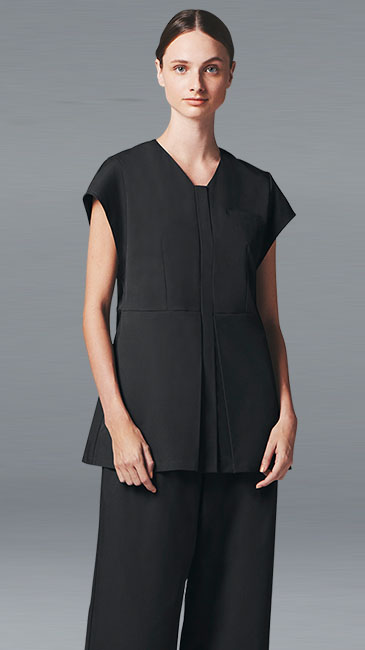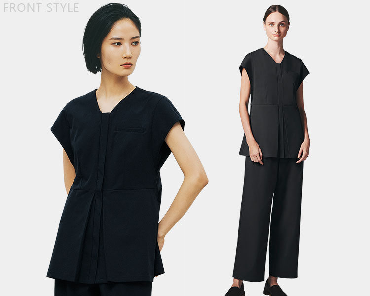 ファッションディレクター榎本実穂が手掛ける「UNITE DIVISION OF ME」のVネックですっきりした印象の美しいスクラブ。
