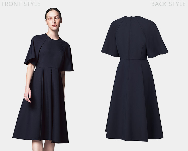 ファッションディレクター榎本実穂が手掛ける「UNITE DIVISION OF ME」ラグラン袖とたっぷりのドレープで、軽やかで柔らかい印象を与えるワンピースです。制菌機能で清潔感もしっかり保たれ、クリニックの受付やサロンなどのシーンに合います。