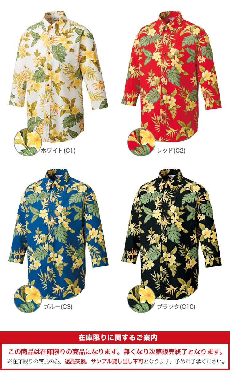 【在庫限り】七分袖アロハシャツ[男女兼用](31-EP8303)