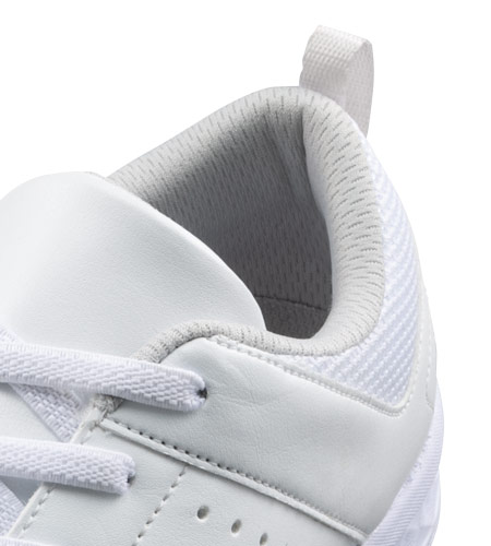 踵部分はソフトで足にやさしく、履きやすい。ゴムの靴紐