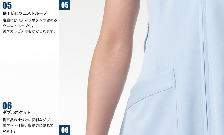 吸水速乾、制電・制菌加工、透防止など、医療現場に必要な機能性も豊富。