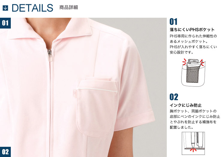 左胸ポケット(PHSポケット付)