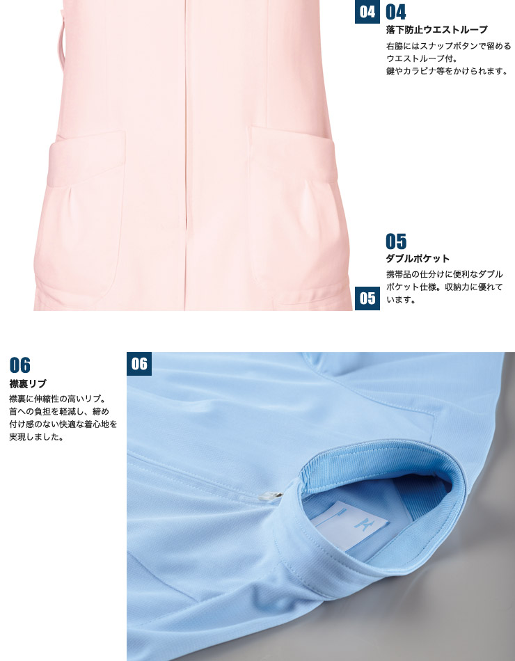 吸水速乾、制電・制菌加工、透防止など、医療現場に必要な機能性も豊富。