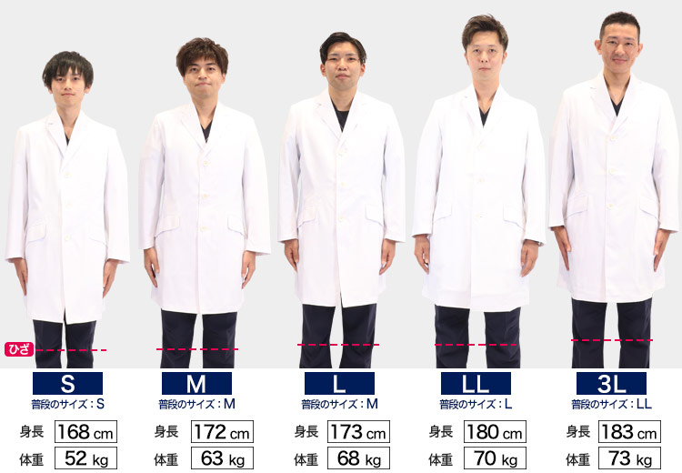 UNIQLOさんなどではMサイズを着用していますが、白衣の機能性を考えるとLが良かったです。