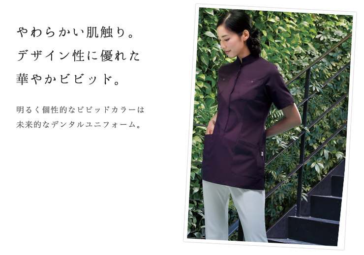 おしゃれに着られるデンタルウェア。ビビッドなカラーでクリニック全体を明るい印象に。