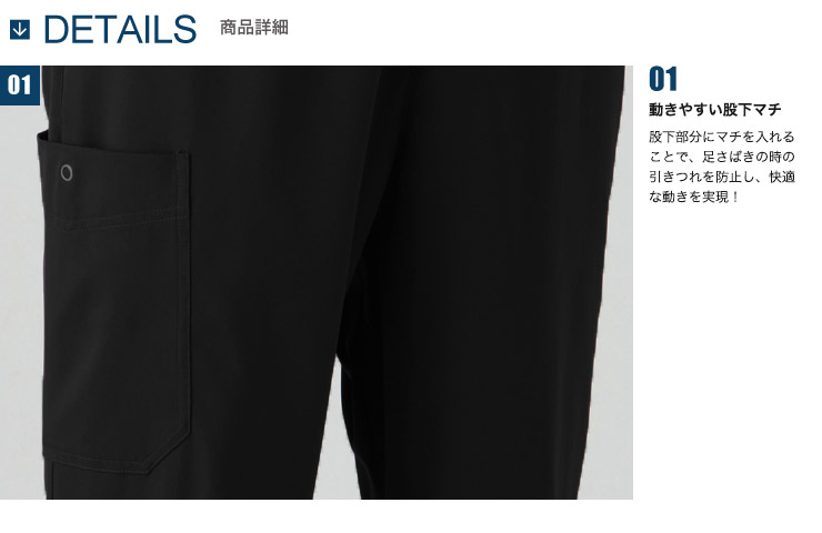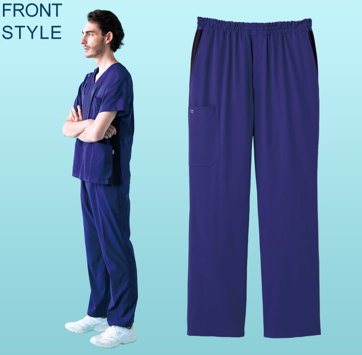 抗菌防臭機能でいつも清潔。ストレッチ素材で軽い着心地のスクラブパンツです。股下マチ付やウエストゴムなど、医療現場に必要なさまざまな機能も充実させています。ポケットの差し色がおしゃれな全3カラー。