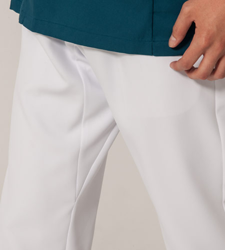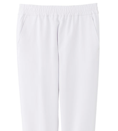裾上げが不要な裾リブ仕様。耐久性も考えられ、工業用洗濯(リネン洗濯)にも耐え、傷みにくく、のびのびになりづらくなっています。