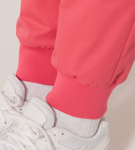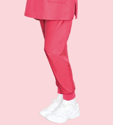 では、この素材を活かすには、どのようなデザインがよいのだろう。ヒントを探しに街に出てみると、裾が伸縮性の素材やゴムでまとったパンツを穿いている人で溢れています。そう、現在日本でも流行している『ジョガーパンツ』です。細身のデザインはストレッチ素材との相性がよく、気持ち短めの丈はファッション性も高い、 そして何よりも新しい。 このスタイルを医療着に取り入れてみてはどうだろうか。
