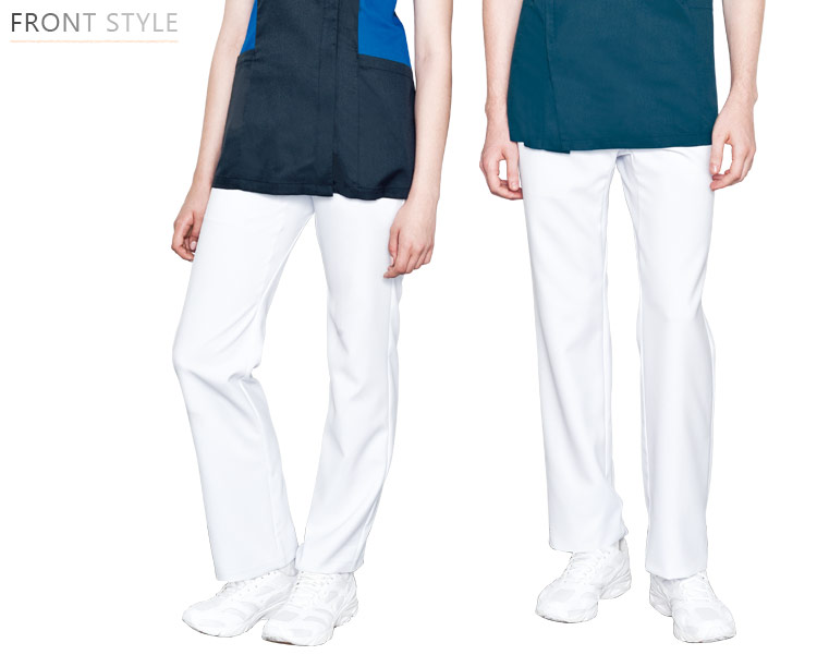 Mizunoの透けにくいイージーパンツ。高い透け防止機能のある素材だから、白衣の下のインナーにもう悩まない! やわらかい手触りで着心地もよく、長くキレイに着られます。
