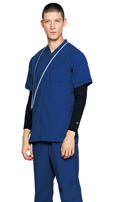 ユニフォームに必要な「動きやすさ」「着心地の良さ」を追求したスクラブ。 働きやすさのために進化したスクラブは、伸縮性に富んだストレッチ素材を採用し、着る人の動きを妨げません。 あらゆる動作にしなやかにフィットするから、運動性の悪さによるストレスを感じさせません。 かっこよさで人気のパイピングスクラブシリーズに着脱簡単なセンターファスナークラブが登場!