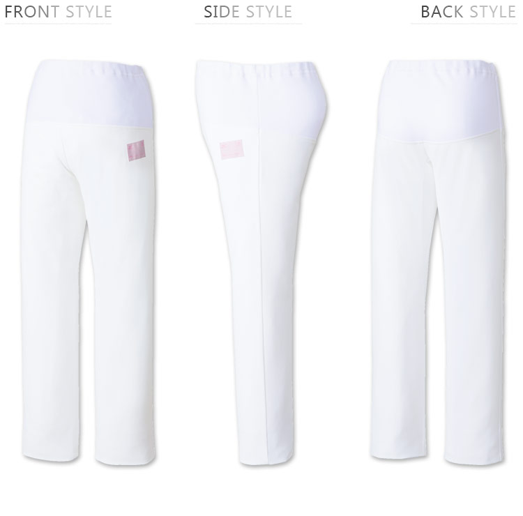 しっかり伸びて動きをジャマせず、心地よい肌触りを実現しています。ホワイトパンツながら透けにくく、制菌加工、形態安定性を兼ね備え、高機能で妊婦さんの負担を軽減します。