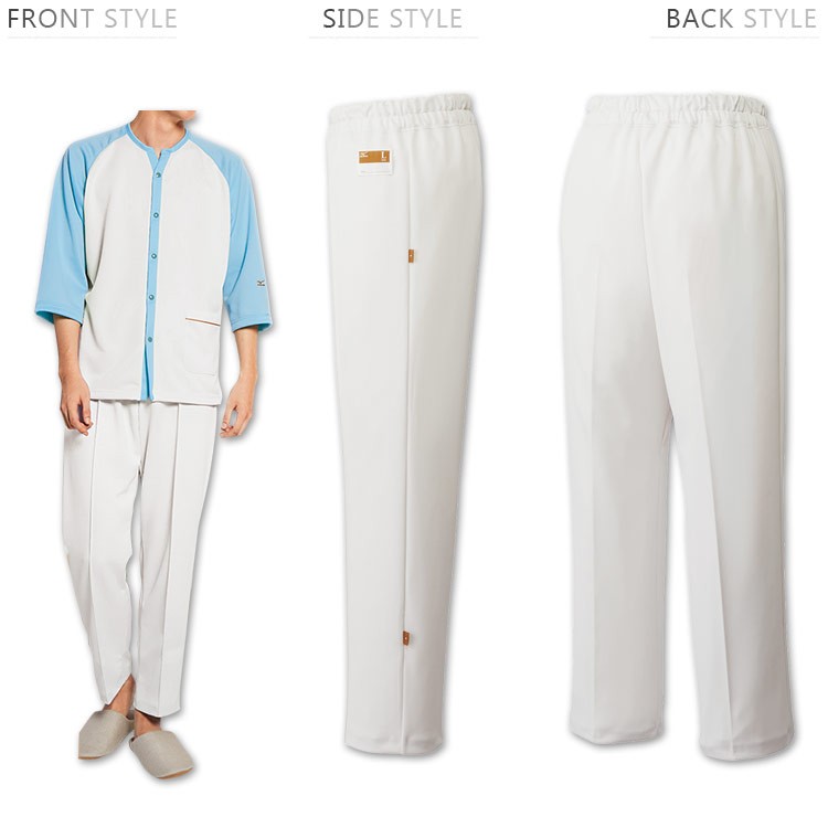 MIZUNOのリハビリケアパンツ。快適さにこだわった薄くて軽い生地が身体の負担を軽減します。耐久性も高く、工業洗濯にも対応します。