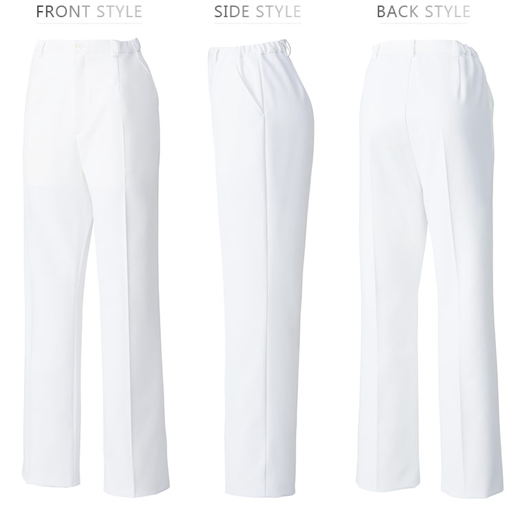 しっかり伸びて動きをジャマせず、心地よい肌触りを実現しています。ホワイトパンツながら透けにくく、制菌加工で透けにくいので医療現場に適した素材です。