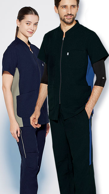 スポーツメーカーのミズノとユニフォームメーカーチトセの共同開発により誕生した医療用ユニフォーム。