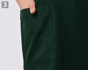 左胸にネームループ、ペン差しポケット、両脇にポケットが付いているため、収納力も抜群です。