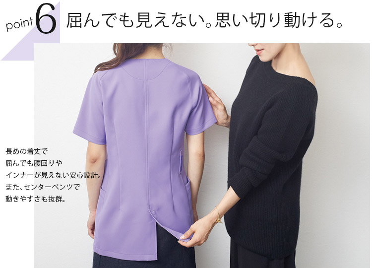 伸縮性に富んだストレッチ素材だから着る人の動きを妨げず、あらゆる動作にしなやかフィット! 繰り返し洗濯しても色落ちしにくく、いつまでもキレイな色合いとシルエットを保ちます。