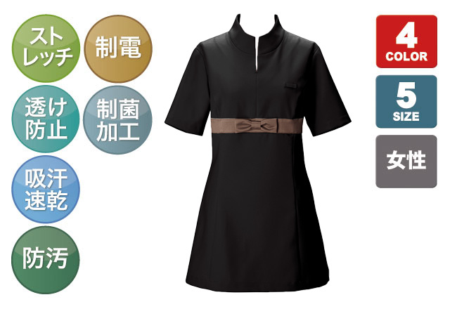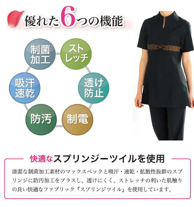 ボンユニのチュニックシャツ。制菌加工SEKマーク(マックスペック)、 防透・吸汗速乾(スプリンジー) 、防汚の機能的なチュニックシャツ。