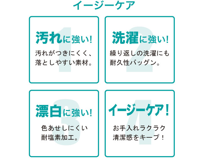 - 耐久撥水、撥油、防汚、制電、脱色防止、家庭洗濯可