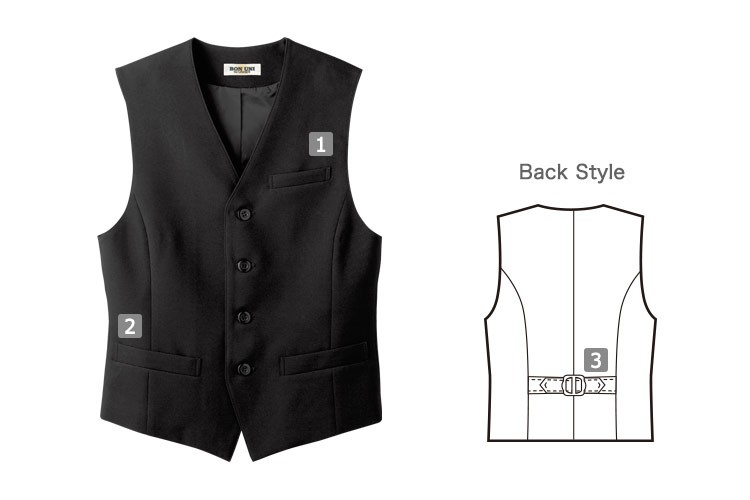 ストレッチ性に優れているため、動きやすい!ネクタイなどとコーディネートしやすい男女兼用ノーカラーベスト。