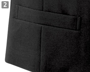 - 左胸ポケット、両腰ポケット、尾錠付きベルト、総裏地付き