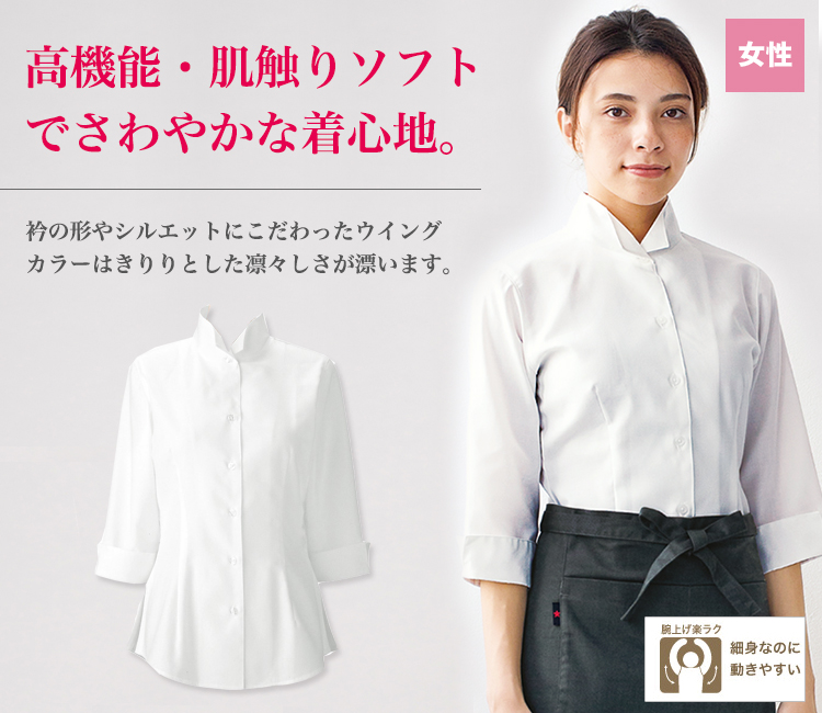ウイングカラーシャツ/七分袖[女性用](32-24223)