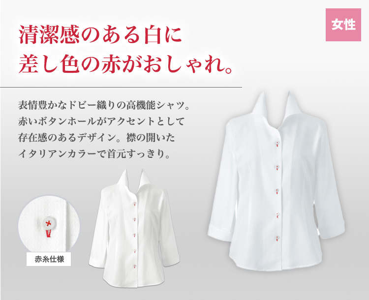 【在庫限り】イタリアンカラーシャツ/七分袖[女性用](32-24227)