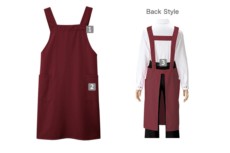 おしりが隠れやすいワイドタイプの胸当てエプロン。太めの肩紐だからズレにくく快適!後ろボタン付きでサイズ調整もできます!汚れ・洗濯・漂白・静電気に強い高機能でイージーケアな素材。 カラーバリエーションが豊富なので、色違いで揃えてもお洒落です。