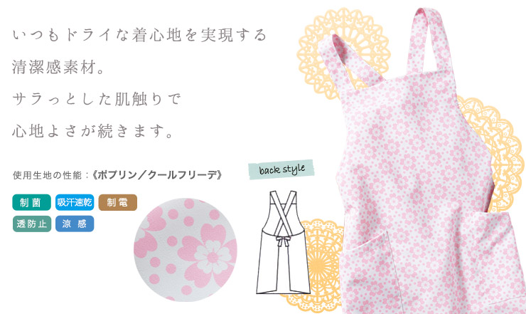 いつもドライな着心地を実現する、清涼感のある素材を使用したエプロン。
