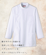 メディカルシーンをサポートするメンズ長袖ケーシー。
