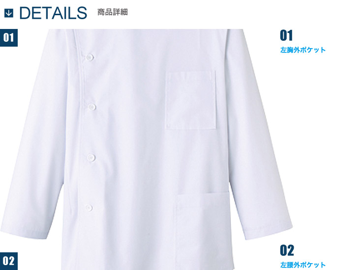 メディカルシーンをサポートするメンズ長袖ケーシー。