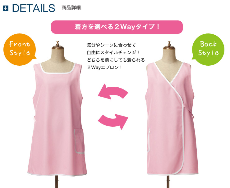 着方を選べる2wayタイプのエプロン。気分やシーンに合わせて自由にスタイルチェンジ!