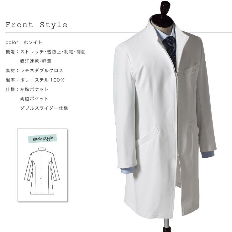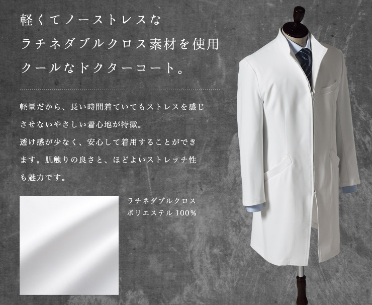 スタイリッシュに知性を表現した、すっきりシルエットのドクターコート。