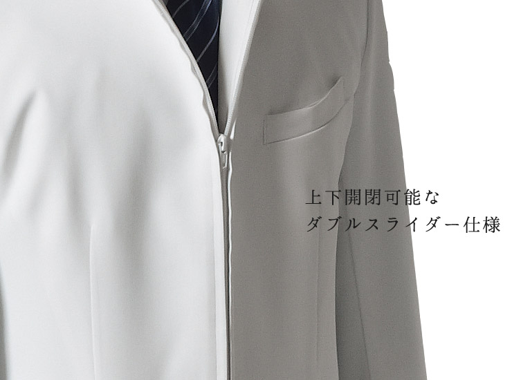ジップアップで上下開閉可能なダブルスライダー仕様だから、着脱も簡単、座った時のシルエットも綺麗です。