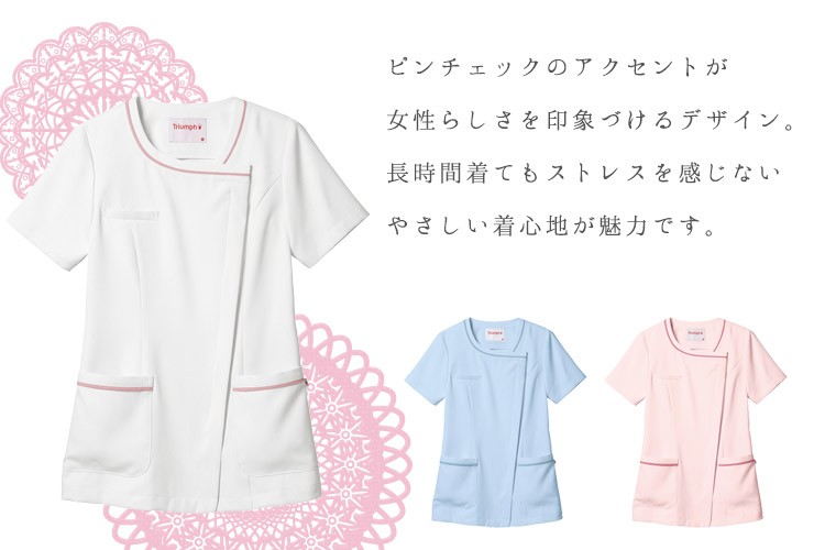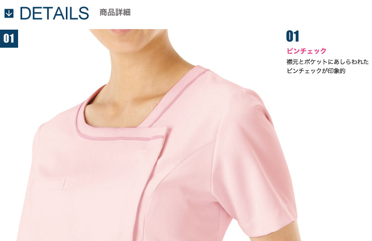 女性らしいラインのケーシーは、ピンチェックを印象づけるおしゃれなデザイン。 軽量だから長時間着てもストレスを感じない優しい着心地。