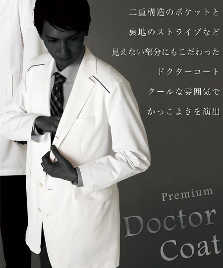 クールな雰囲気のある、テーラードカラーのドクターコート。