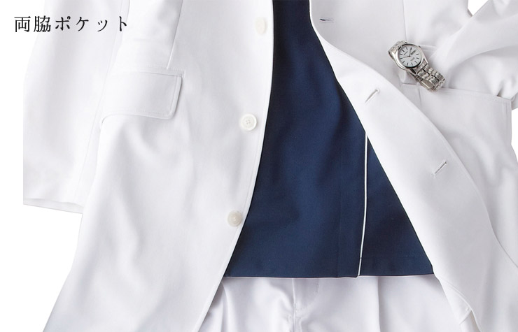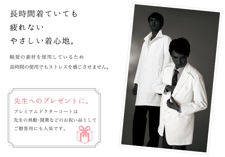 クールな雰囲気のある、テーラードカラーのドクターコート。