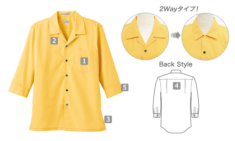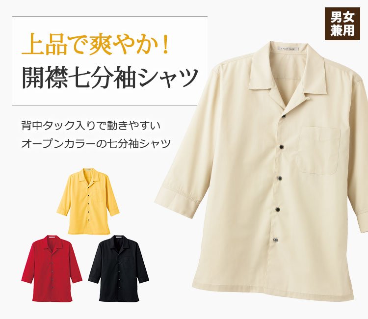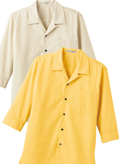 飲食店・ショップからサークル・イベントまで!カジュアルも上品も演出できるオープンカラー七分袖シャツ