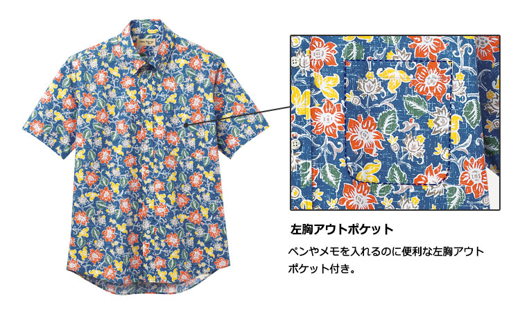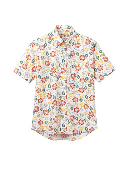 アロハシャツながらも、ボタンダウンの襟元できちんと感をプラス。カジュアルすぎないためユニフォームに最適です!