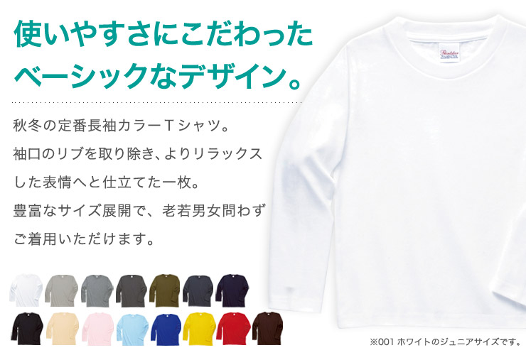 秋冬の定番長袖カラーTシャツ。 袖口のリブを取り除き、よりリラックス した表情へと仕立てた一枚。