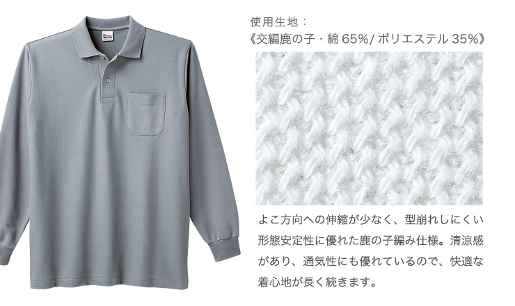 [通年]カノコ長袖ポロシャツ[胸ポケット有り][男女兼用](41-00169VLP)