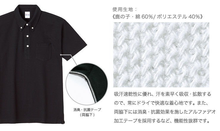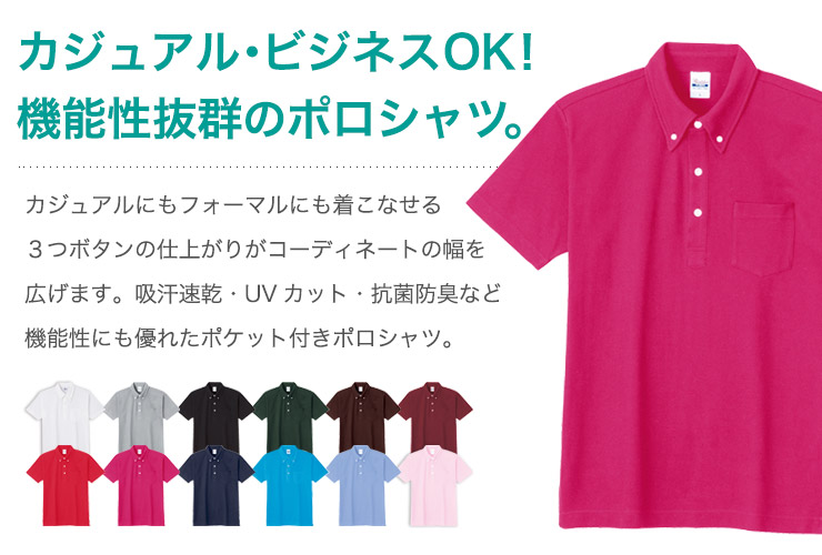 吸汗速乾、UVカット、抗菌防臭、消臭など、機能性に優れたポケット付きポロシャツ。