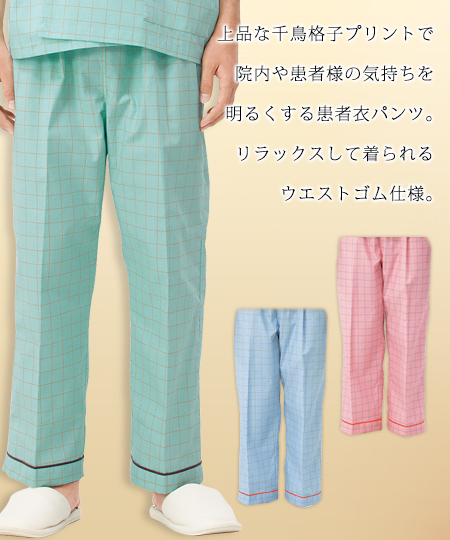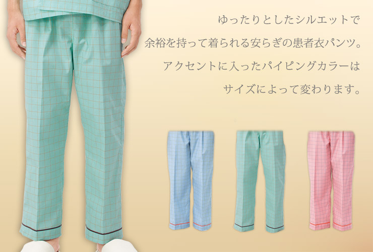 ウエストゴムで楽に着られる安らぎの患者衣パンツは、