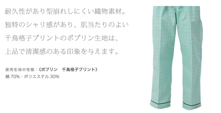 優しい色合いと上品な千鳥格子プリントで院内や患者様の気持ちを明るくするデザイン。