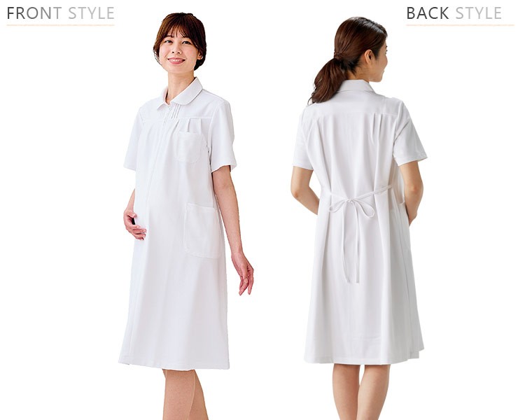妊婦さんになっても美しい姿で輝き続けるショールカラーのかわいいワンピース。月齢に応じて変化するお腹のサイズに対応した調整ひもが付いております。