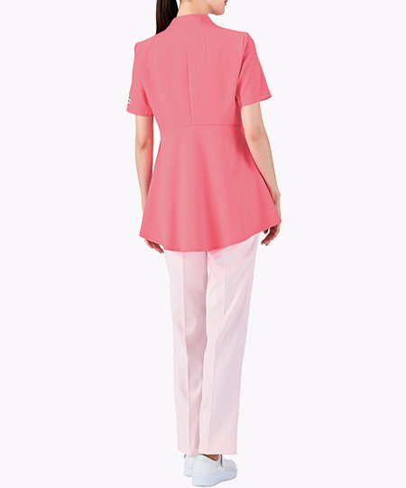 新色のピンクは、上衣をピンクのグラデーションでコーディネイトとすると優しい雰囲気で特におすすめです。生地はしっとり優しい肌触りで、透け防止効果があるインナー付きの二重構造。